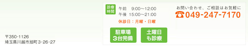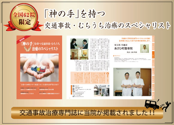 川越市近辺にお住まいの方で病院や整体に行ってもなかなか症状が改善されずお困りの方は一度あさひ町整骨院に相談してみて下さい。