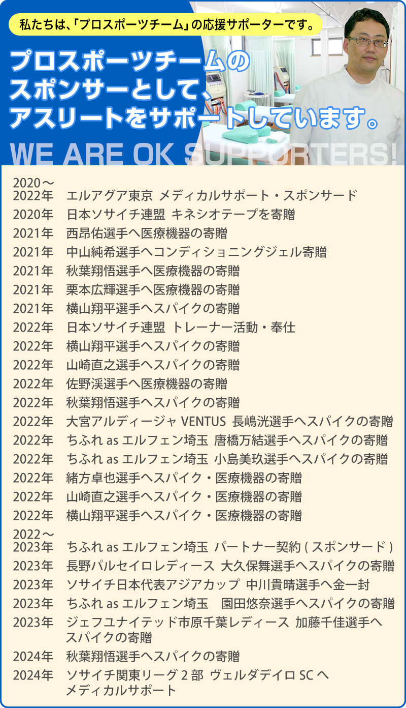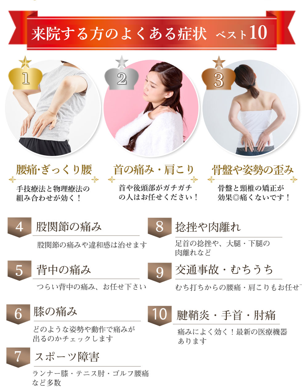 私達の整骨院では、症状改善のスピードを意識してカイロの理論を取り入れ施術を行っております。ケガをして痛めた患部だけではなく身体のバランスに目を向けヒト本来の身体の可動域を取り戻す事で症状改善を図り、とにかく早く症状改善を図るという目的の元、徹底した原因の追究、症状説明に心掛け、お客様に安心して頂ける医療を提供致します。どのような症状にも真向からチャレンジし、お客様の求めている結果を実現できるよう、懸命に邁進してまいります。